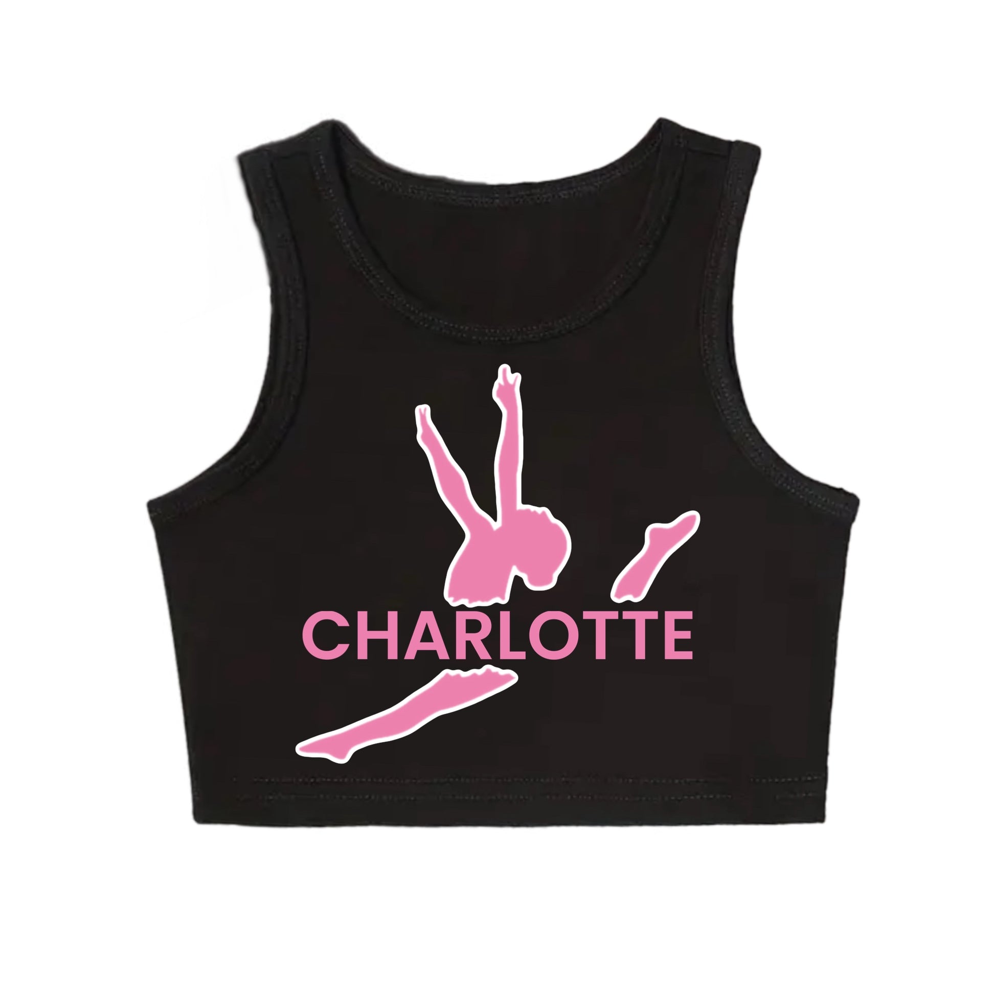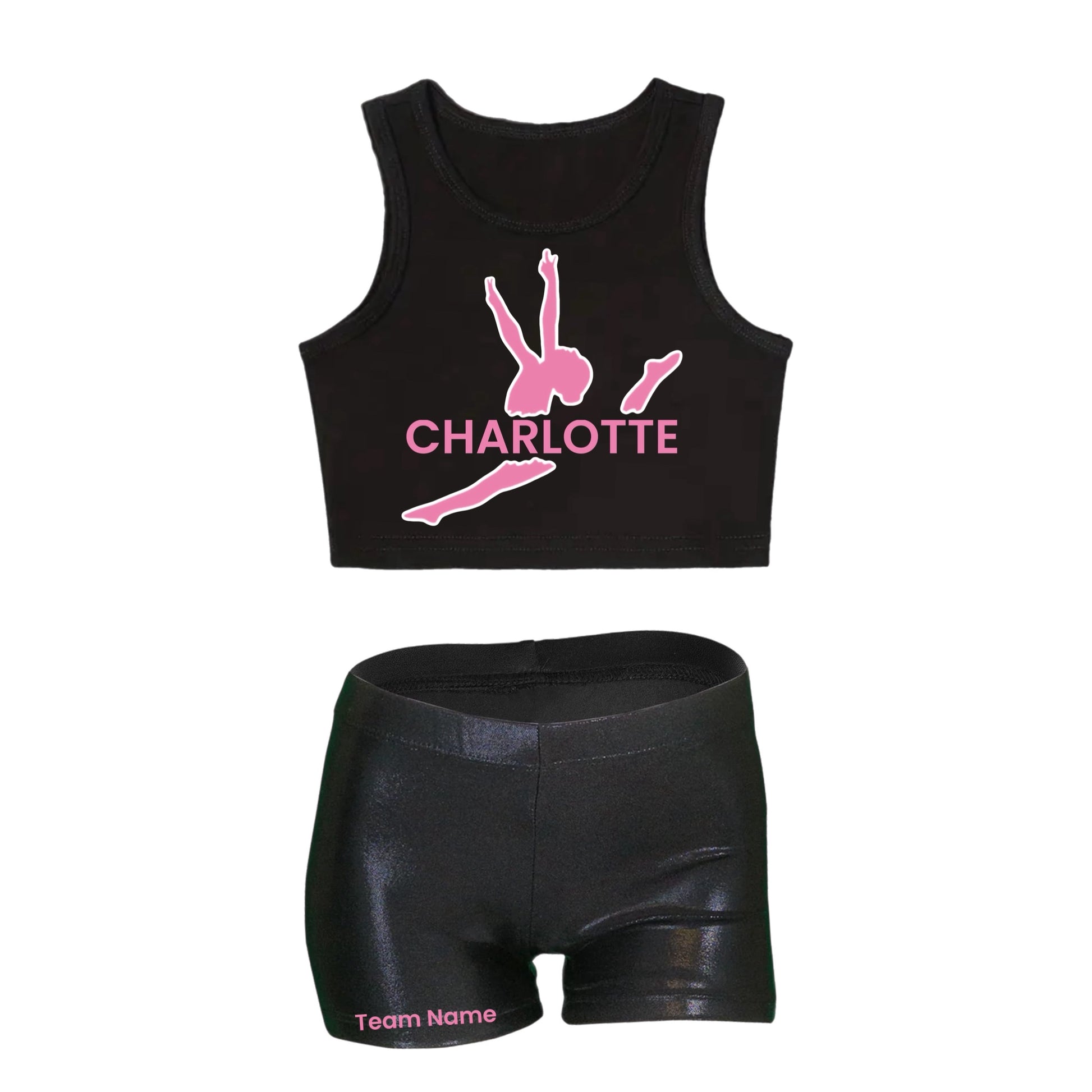 Personalized gymnast crop tank, with or without matching shorts. We'll contact you after ordering to customize!